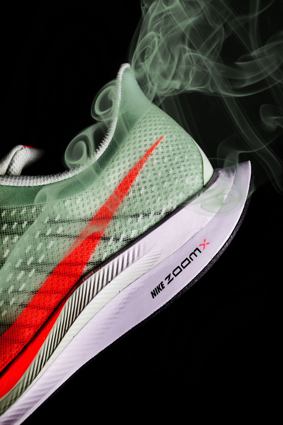Nike ZoomX 搭配 Nike React 的顶级缓震科技,半透明无缝网眼的透气鞋面,流畅的速度造型设计,鞋身超轻的重量,以及梦幻般的脚感!