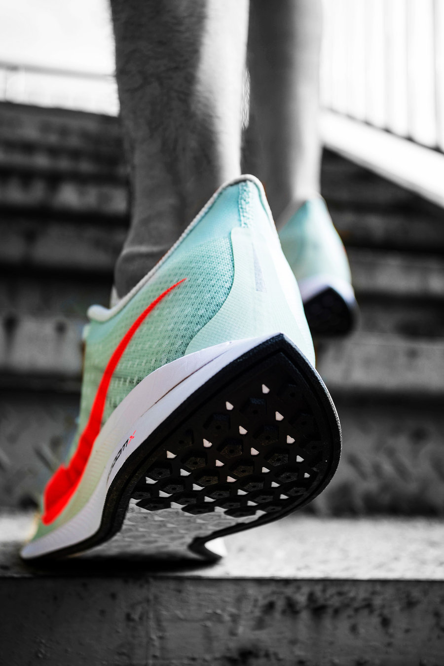 相比于其他泡棉材质,Nike ZoomX 提供了极为出色的能量反馈,而 Nike React 的加入则增强了耐久性和稳定性,一种踩在云彩上飞奔的感觉,带来突破性的缓震体验。