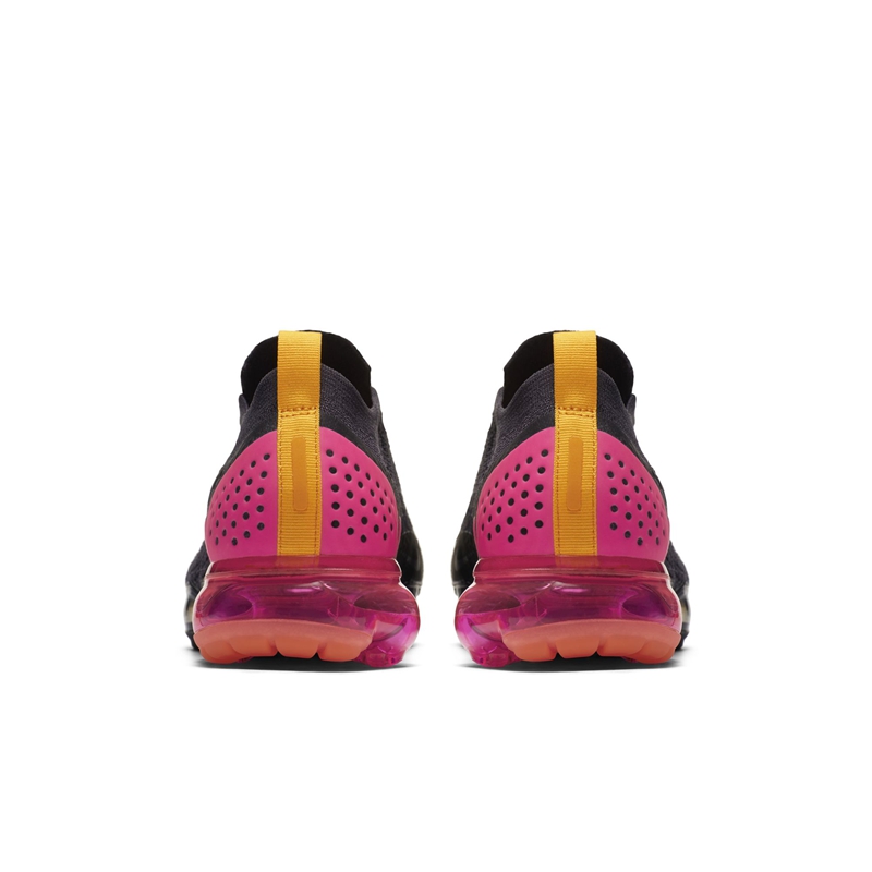 风靡街头的 Nike Air VaporMax 系列的热度持续,而作为该系列的升级款 Nike Air VaporMax Flyknit Moc 2 将很快推出全新的黑粉配色。 鞋型继承 Nike Air VaporMax 2.0,以弹性绑带代替鞋带,穿着更方便。全新配色为黑色鞋面搭配玫粉色鞋面,并以黄色后跟飘带进行点缀;同时前后掌气垫的颜色也对应鞋面的黑色、玫粉色,火热亮眼,喜欢亮骚配色的潮人夏日好选择! 目前暂无获得相关发售信息,同时我们也将对该鞋款进行跟进并报道,喜欢的朋友不要错过。