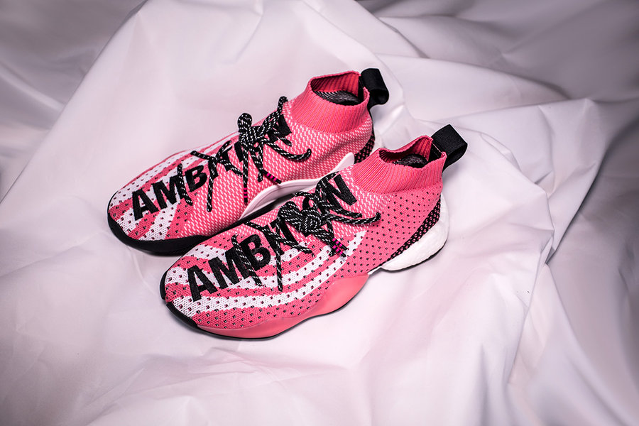 一共有两款配色(货号 G28182/G28183),都以黑色和粉色作为主色调,一个黑粉一个粉黑,一个闷骚一个亮骚,加上精致的编织纹理和 3M 反光鞋带,上脚的气场强大到让人窒息!这毕竟是一双从未发售过的新鞋型,绝对刷新路人的 “鞋观”!