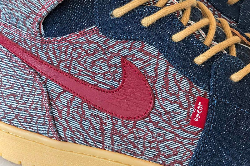 在三双 Levi's x Air Jordan 4 发售之后,虽然人气直线上升,可是还有很多人期待下一款联名合作产品! 近日,JBF 定制团队打造了一双 Levi's x Air Jordan 1,鞋面是用 2008 年 Jordan 与 Levi's 的牛仔裤打造而成。 鞋头与鞋帮处由深色牛仔布缝合而成,而后跟与鞋中处则是采用带有爆裂纹图案的牛仔布料制成,整体质感极强,令人过目难忘!
