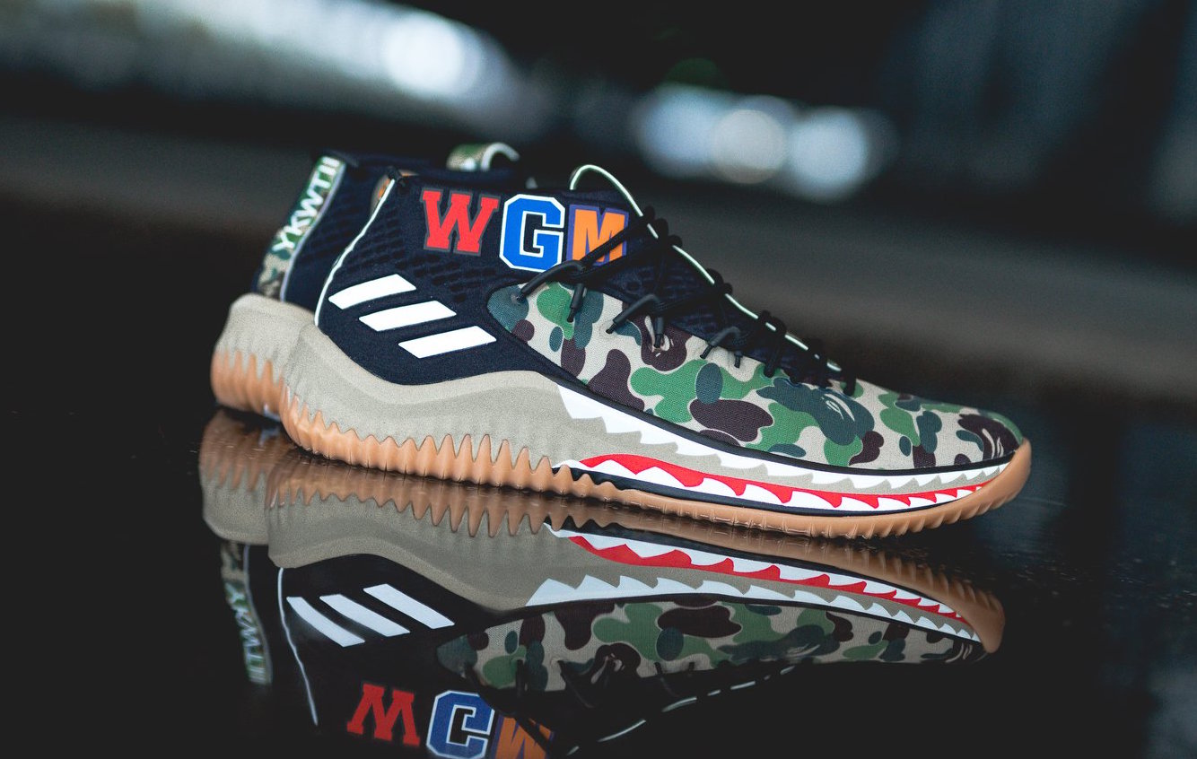又是一双颜值极高的联名实战鞋,Bape 最经典的迷彩元素覆盖鞋面,鲨鱼齿图案完美的点缀在中底,配合 Dame 4 本就凶悍的外形设计,二者完美融合,之前想买又觉得贵的朋友可以再次考虑一下了。