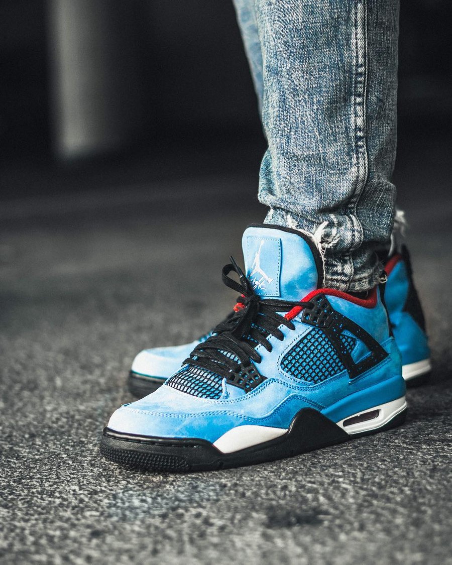 Travis Scott x Air Force 1 市场价格早就达到三千以上,AJ4 联名的价格却一路下跌,说实话天蓝色的清爽加上整双鞋的设计细节,都绝对算是一双高颜值、高规格的联名球鞋。