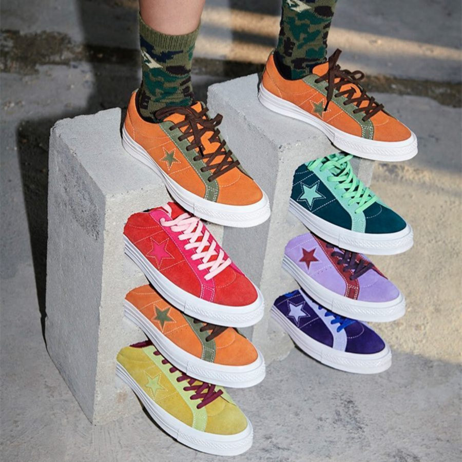 麂皮材质打造的 Converse x GOLF le FLEUR* 小花联名几波发售都有不俗人气,近日 Converse 又推出了同样为麂皮材质的 One Star “Carnival Pack”。 与 Converse x GOLF le FLEUR* 小花联名系列风格近似,同样由麂皮材质打造,并且也有多款亮眼彩色推出。 质感和风骚色调都不逊于小花联名,唯一的差别就是 Logo 是常规设计。同样风骚又不用抢,绝对会有不俗人气。 海外现已发售,国内发售信息我们将持续关注并第一时间报道。
