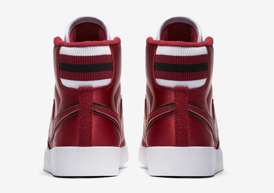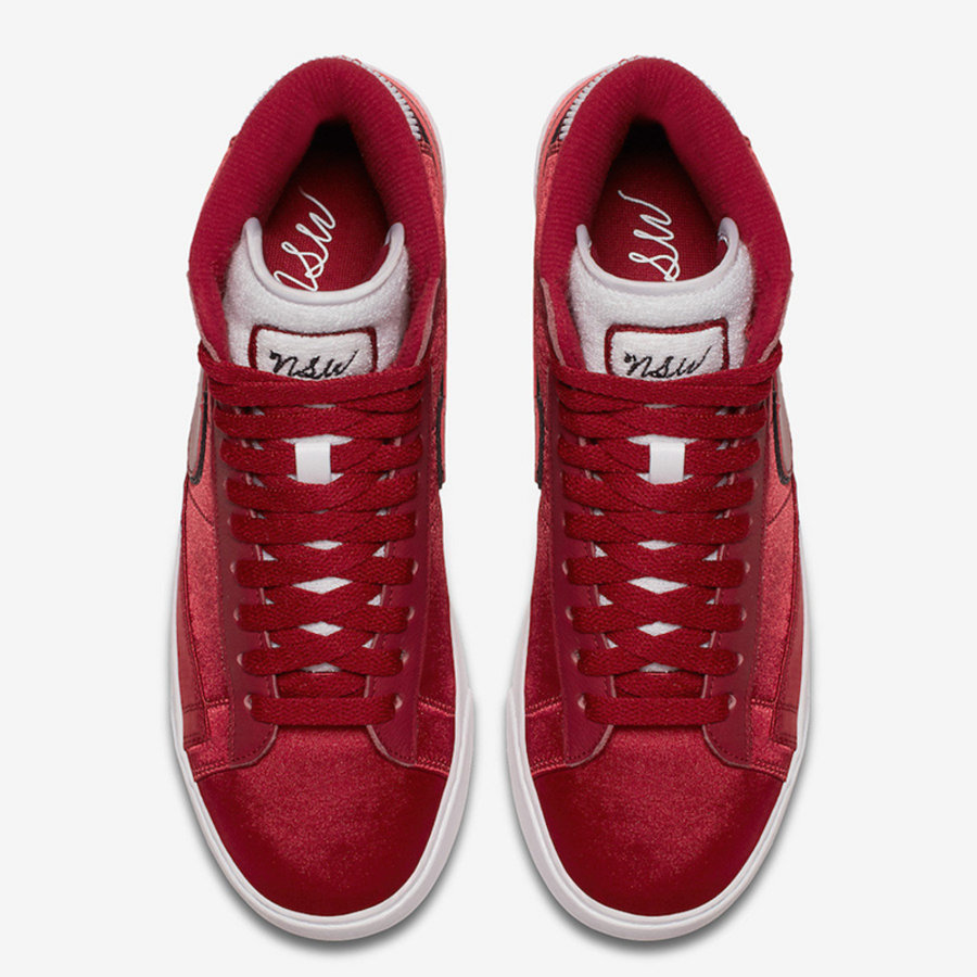 随着 AJ1 丝绸扣碎的成功,越来越多的鞋使用丝绸材质打造特殊版本。经典鞋款 Nike Blazer 也推出丝绸版本 “Red Crush” 配色。