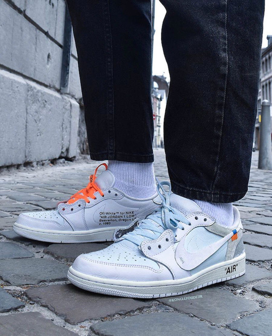 ▼ 真有人做出来了 AJ1 x OW 低帮版本,并且还上了脚!