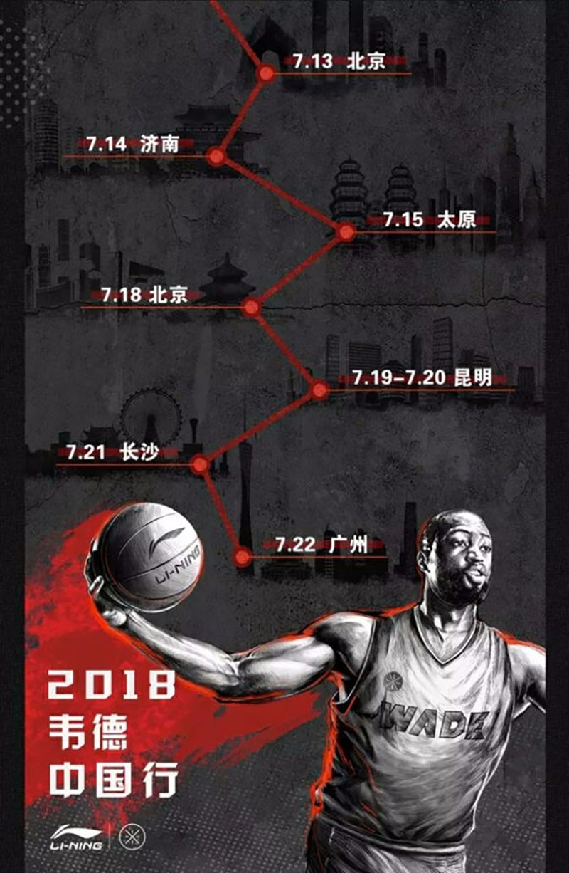 接下来,韦德还将前往昆明、长沙、广州三座城市,与球迷们展开亲密互动。