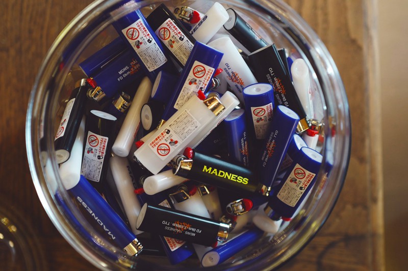 此次 MADNESS 也将贩卖东京店铺期间限定单品,包括 T-shirt、夹克、牛仔裤、打火机、烟灰缸、移动充电宝、零钱包、登山扣等,产品类型可谓非常丰富。