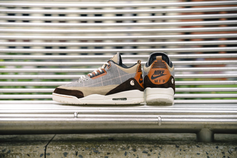 经典的篮球鞋与经典工装产品相结合,会带来怎样的冲击效果呢? 墨尔本球鞋定制专家 BespokeIND 以 Air Jordan 3 为原型,将条纹面料、袋鼠皮、麂皮等材质相结合,打造出带有独特质感的鞋面示人,鞋舌与后跟处带有 Carhartt 的签名式 Logo。 该定制鞋款仅限量发售 8 双,将于 7 月 27 日在 BespokeIND 官方网站发售,喜欢的朋友可以考虑入手哦!