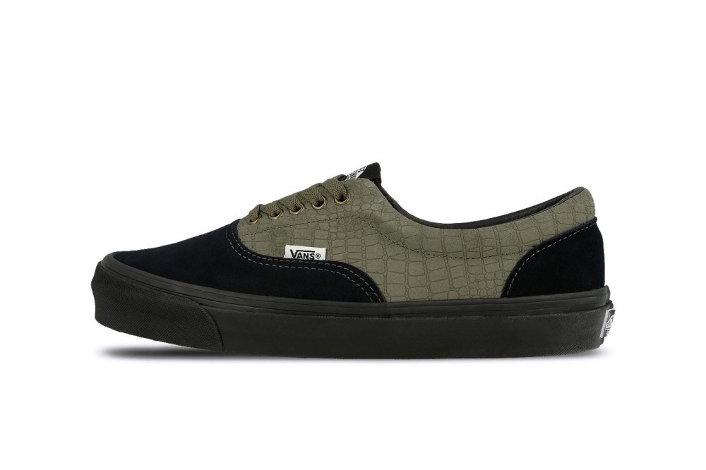 从曝光图中大家可以看到这次双方联名鞋款将包括三款经典鞋型 SK8-Hi、Era 及 Old Skool,其中最引人瞩目的当属是在鞋侧配上双色火焰图案的 SK8-Hi;而 Era 则使用了双色鳄鱼皮与黑色鞋身拼接的设计;Old Skool 采用了最经典的日本军事风,牛仔布与麂皮拼接手法,日潮工装属性满满。