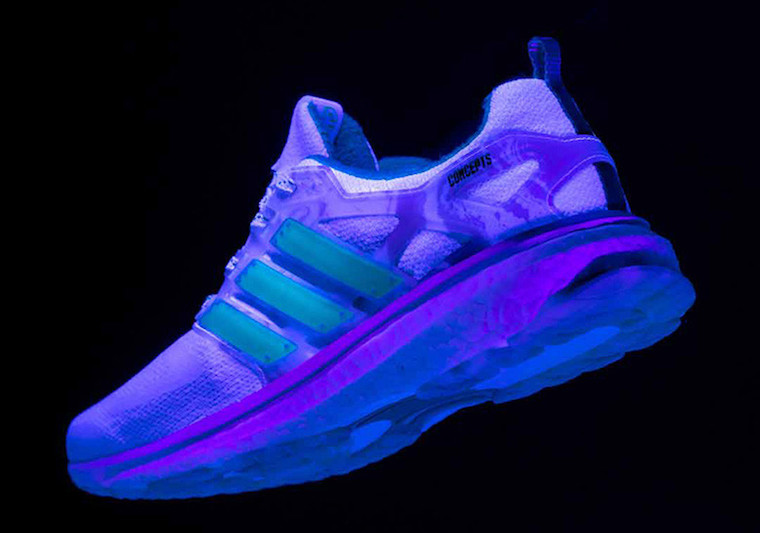 在 Concepts x adidas 的发售前,这款联名鞋的一些隐藏细节遭到曝光,当把它放在一个黑灯下时,它会呈现出一个白色大理石的设计,它给了此次联名增添了更多惊喜。