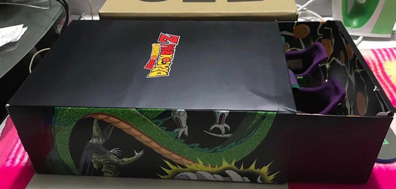 除此之外,鞋盒也随之曝光,采用抽屉式设计,正上方为龙珠 Z 标志,内里还有龙珠点缀,侧封则为沙鲁和神龙图案,小编猜测也许集满 7 款,鞋盒会像漫画书的书脊一样,拼成一整副涂画!