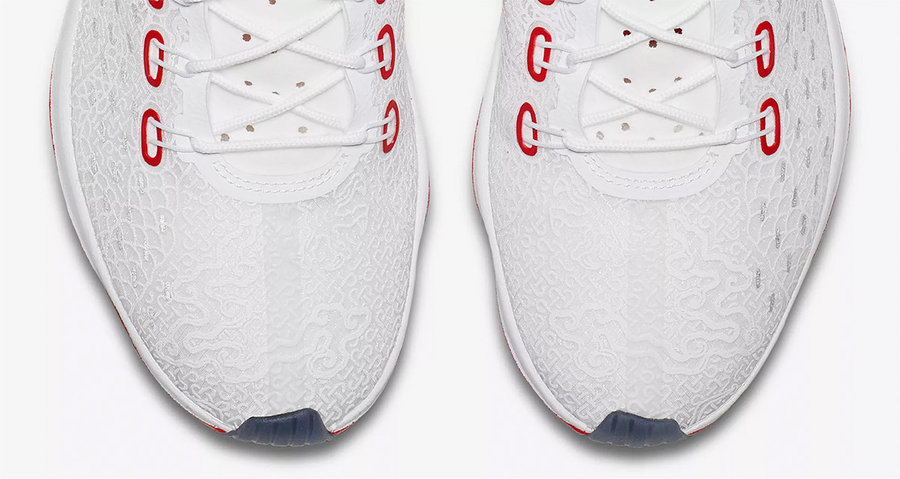 整体以清爽的白色作为背景,白透明鞋面带有精致的龙纹细节,若隐若现,别具中国传统的含蓄气质。