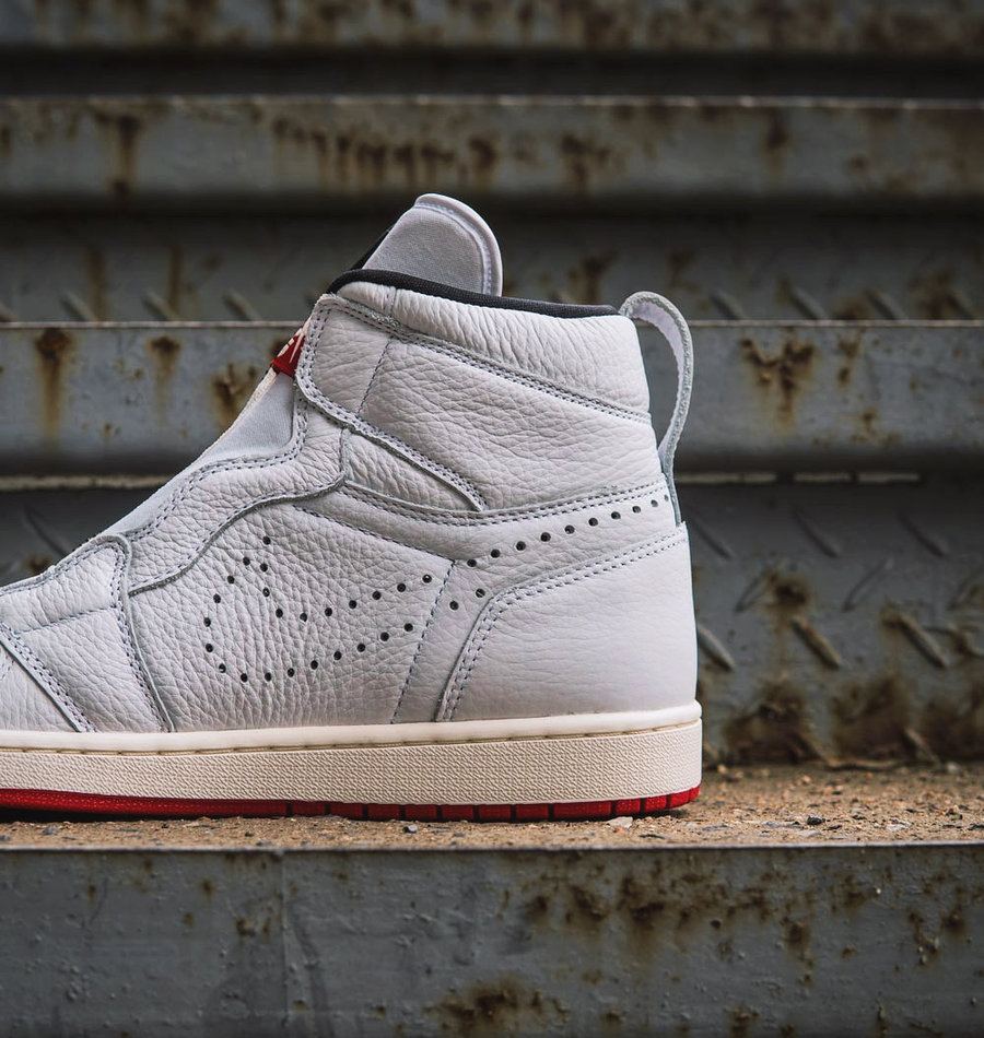拉链旁的红色 Nike 标签,彰显身份的同时为球鞋增添活力。上街穿搭,似乎这样设计的 AJ1 都可以做的更出色。