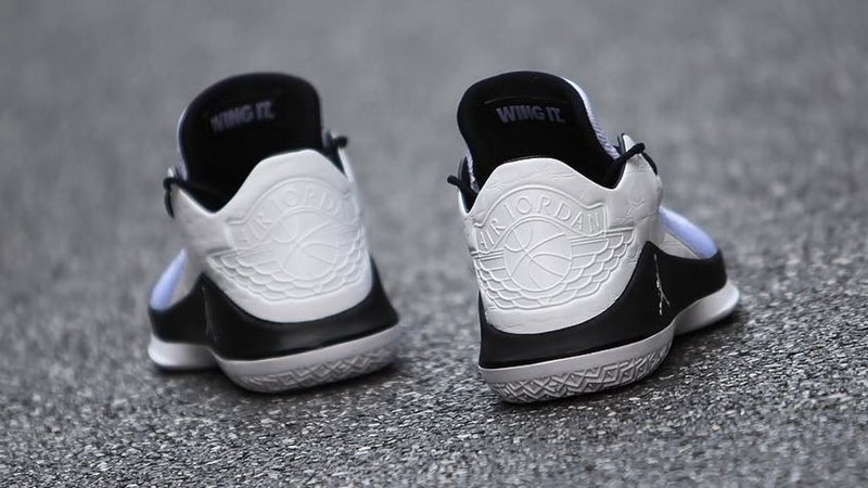 作为致敬配色,此番 Air Jordan 32 Low “Wing It” 很好地再现了原版宣传海报的神韵。纯白色的 Flyknit 编织鞋面夹带三角形黑色织线,中底一袭黑色辅以银色的 Jumpman 飞人 Logo,配以米白色鳄鱼皮压纹后跟,并将 “WING IT.” Logo 标签贴于鞋舌里侧,最后以白色大底收尾。