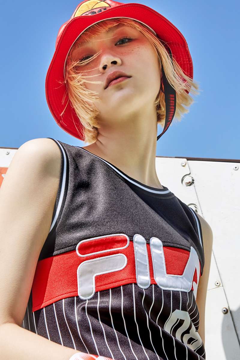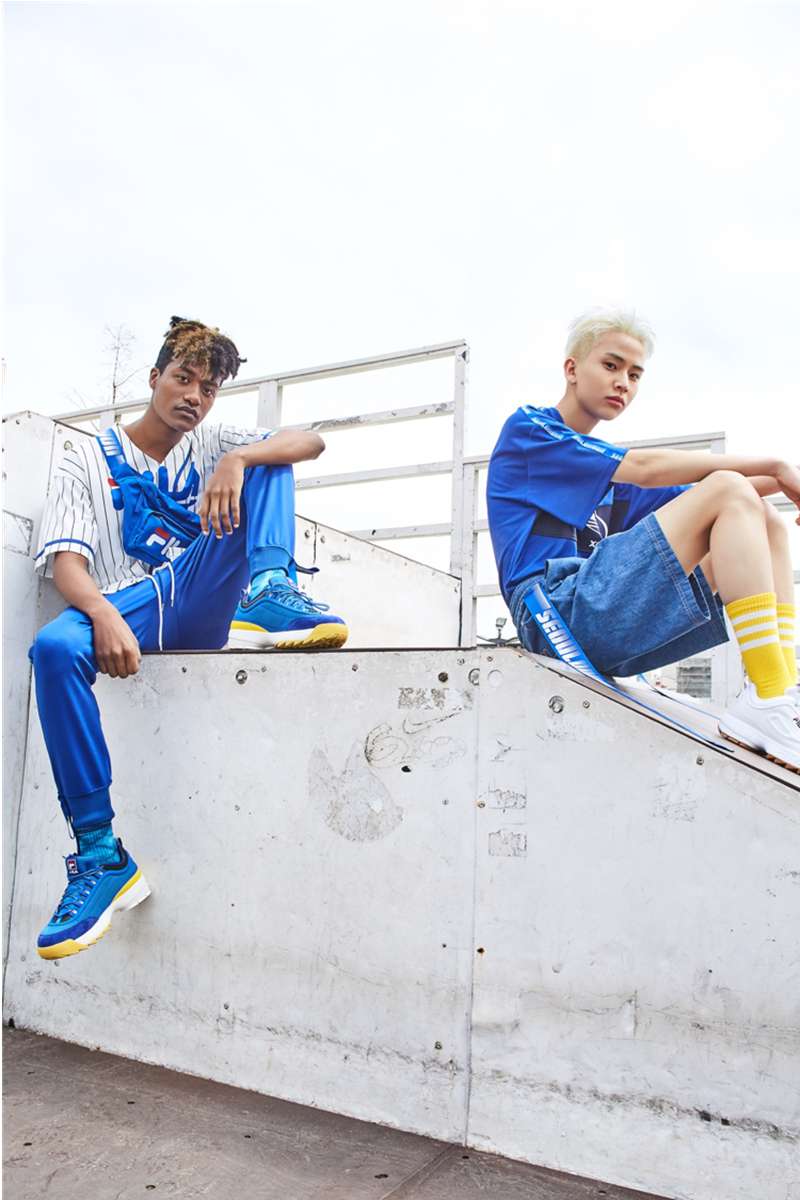 在款式上,以篮球背心搭配醒目的 FILA logo 打造清爽活泼的街头造型,腰侧的绳结更是将时尚表现力展露无遗。另一款,一衣两穿的棒球外套,以 OverSize 的版型作为时尚主调,让男生和女生都能完美驾驭。