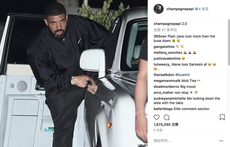 Drake 转投 adidas 的事情几乎算是公开的秘密了,但近日 Drake 竟然又换上 Nike 的鞋款服饰。再加上 adidas 方面迟迟不公布 Drake 加盟的消息,这不禁让人猜想 Drake 到底有没有正式投靠 adidas?更值得注意的是,Drake 本人在 Ins 上的发帖将照片中的鞋款部分截去了,这种做法似乎在表示着什么。