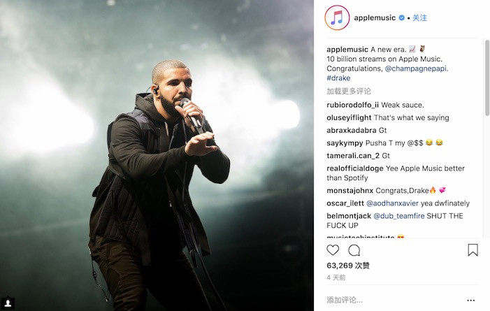 Drake 成为 Apple Music 史上首位点击播放超越 100 亿次的歌手