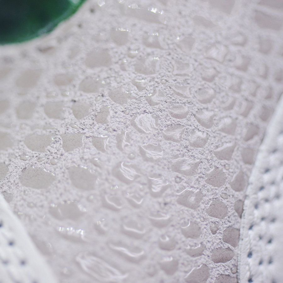 鞋面由以往在定制鞋款中才能见到的奢华鳄鱼纹皮质打造,搭配同样能凸显质感的白色荔枝纹皮革,打造华贵素雅的造型。