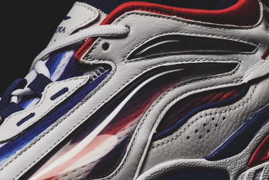以 2004 年奥运会中国代表团领奖鞋极光为蓝本打造,延续了红蓝渐变的鞋面线条和超大 Logo 设计,继承纯正的复古风格。