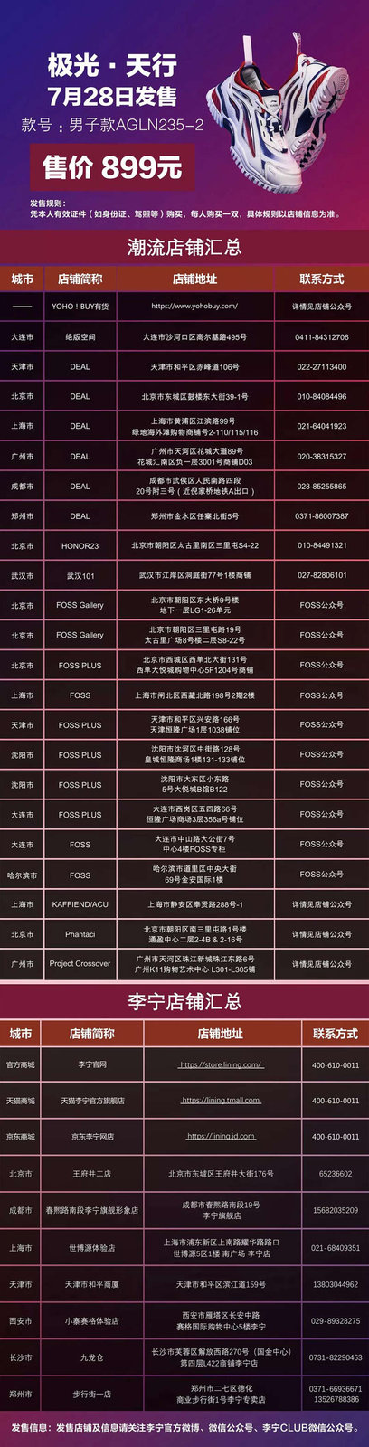 将于本周六登陆李宁官方商城、天猫李宁官方旗舰店、京东李宁网店、YOHO!BUY有货限定频道以及YOHO!STORE,以下潮流店铺及线下李宁店铺也将同步发售!