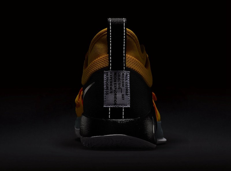 近日,Nike 曝光了一双 PG 2.5 的全新配色。鞋款整体以黑黄亮色呈现,虽然与之前欧文签名鞋款 Kyrie 3 李小龙配色极为相似,但此双配色并不是李小龙主题。从鞋款细节方面来看,右脚的鞋舌与后跟缝有白色唛标,其上印有乔治的名字,同时下方还有 “MOON EXPLORATION” 的字样,意为 “月球探索”,猜测是此款配色的真正主题。