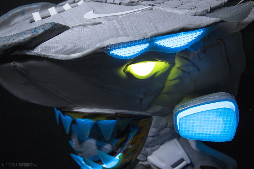 说到球鞋界的顶级王者,Nike Air Mag 绝对是每个球鞋爱好者心中的梦幻级鞋款,即便是 2011 年限量发售的 Nike Air Mag 如今的市场价格至少也要在 ¥70000 元以上,近日国外一位球鞋面罩艺术家 Freehand Profit 竟然以这双鞋为原材料打造出一个巨型鲨鱼面罩!