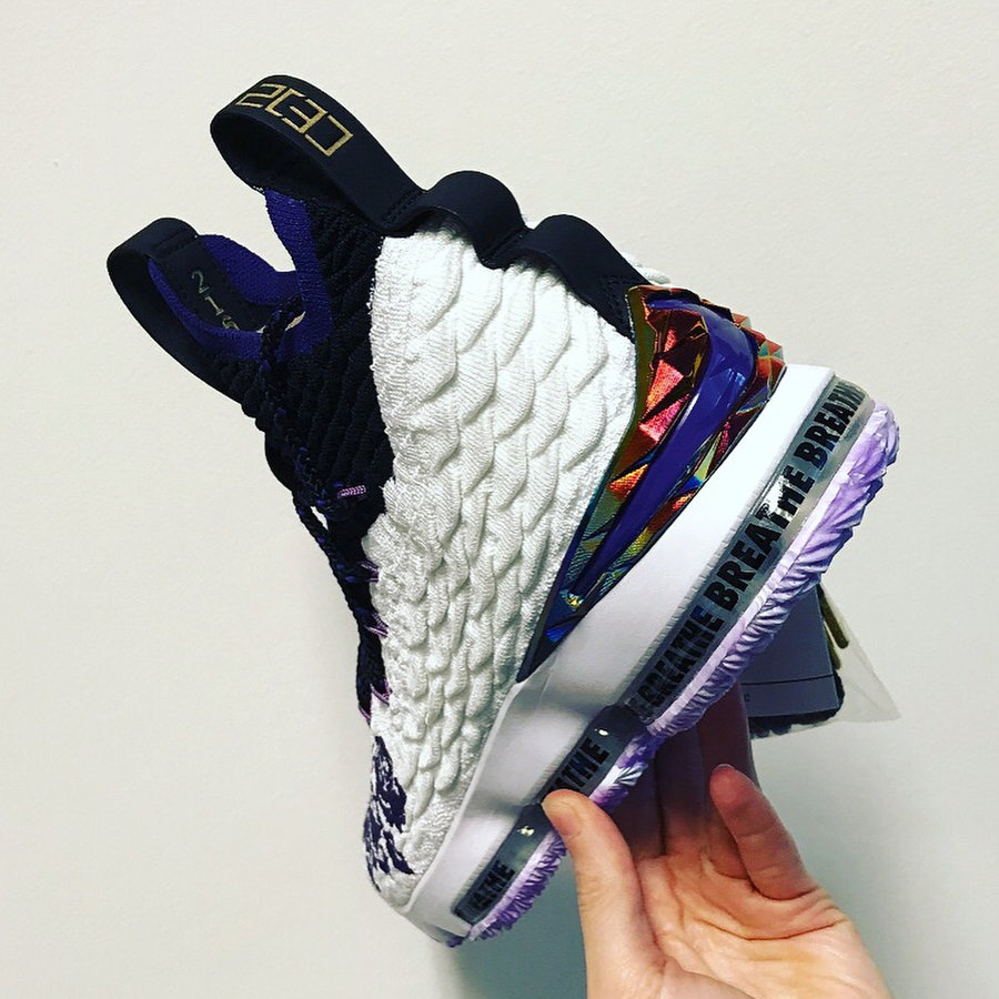 在今年夏天加盟了湖人之后,詹姆斯似乎对紫色格外偏爱,前段时间刚刚上脚了一双纯紫色的 Nike Air Zoom Generation “Purple Suede”,近日他又在自己的 Instagram 账号上晒出一双白紫配色的 Nike LeBron 15 “Purple Rain”。