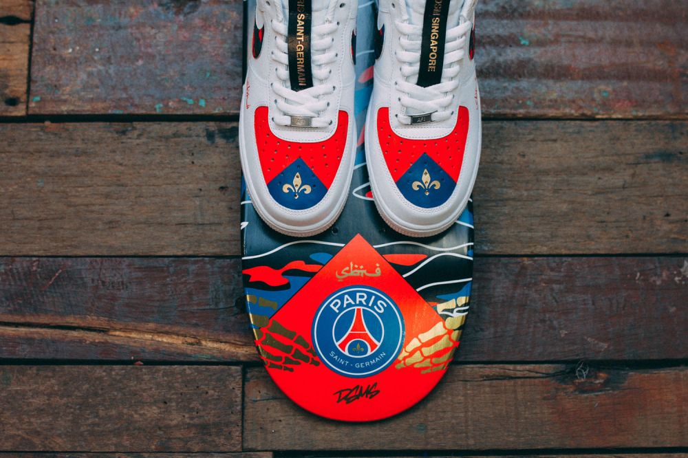 今年的巴黎圣日耳曼足球俱乐部将迎来众多的联名合作,跨界 Sneaker 球鞋圈,PSG 依然魅力十足! 此番携手了新加坡的著名球鞋定制单位 SBTG,带来一个 “巴黎圣日耳曼” 配色的 Air Force 1 定制款。 既呈现了 PSG 最具标志性的金色百合花标志,SBTG 的招牌迷彩纹理也出现在 Swoosh 之上,简约大方又有独特的视觉感受。 这款定制 AF1 已经在新加坡 DSM 发售,发售价高达 $440 美元!还有一款配套的同主题滑板上架。