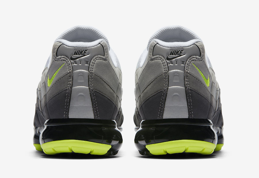 今年 Nike 开始大玩杂交设计,推出 Air VaporMax 97、Air Max 97 Plus 和 Air Max Plus 97 等鞋款,随后又带来一双全新的 Nike Air VaporMax 95,首发配色还以 Air Max 95 最经典的元年 “Neon” 为主题,近日这双鞋公布了发售日期与官方图片。