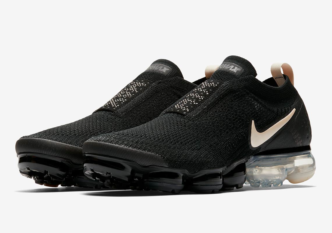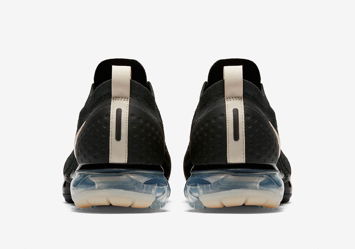 鞋型继承 Nike Air VaporMax 2.0,以弹性绑带代替鞋带,穿着更方便。全新配色为黑色鞋面以及奶白色 Swoosh 以及后跟标签点缀;同时前后掌气垫的颜色也对应鞋面的黑色、奶白色,极为低调的经典配色,喜低调的潮人夏日好选择。
