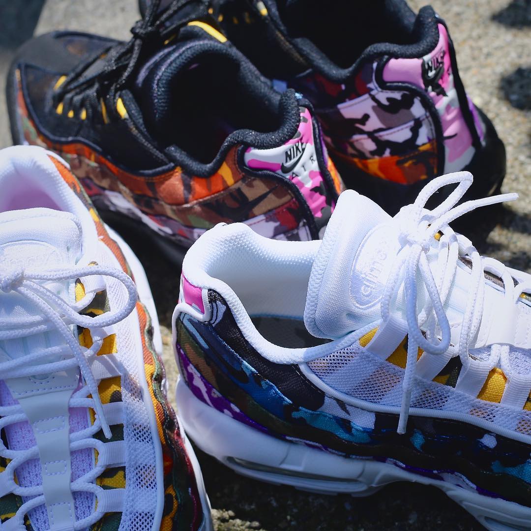 近期非常有特点的 Nike Air Max 95 “ERDL Party” 系列临近发售,日本球鞋店铺 atmos 率先带来黑白两双配色的上脚照。