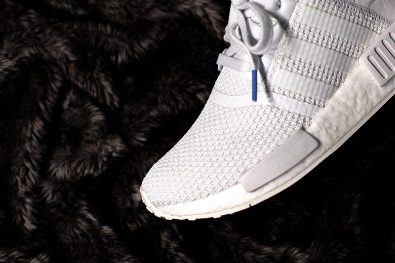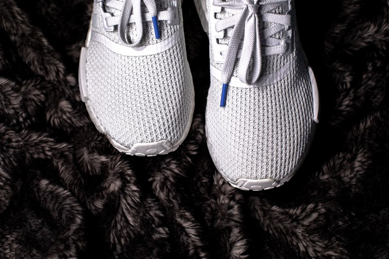 此款 NMD R1 采用网面材质鞋面,并施以稍偏于淡灰色的白。中底标志性的稳定块也采用相同配色,而 Boost 中底则以纯白色示人。
