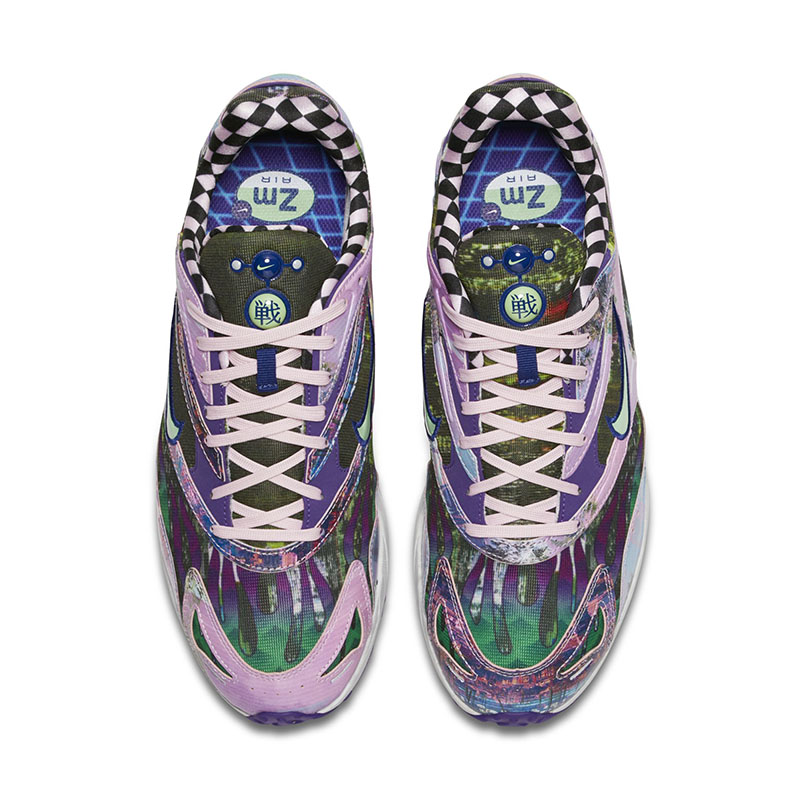 鞋舌与后跟带回元年 “戦” 字标识,经典的 Zoom Air Logo 嵌于中底之中,内衬则以赛车风范的黑白棋盘格示人,营造出前卫的速度感受。