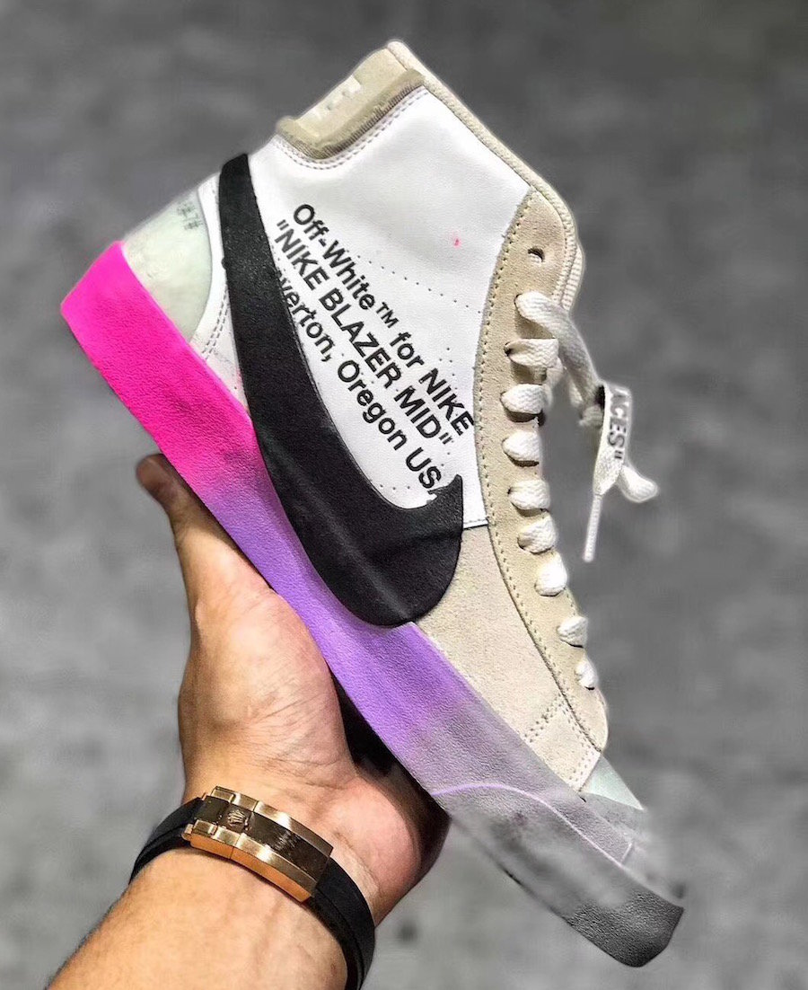 Virgil 打造的 OFF-WHITE x Nike Blazer Mid 也是 “The Ten” 系列中人气重磅款式,放大了 Swoosh,并贯穿到了鞋底部分,视觉冲击力格外突出! 之前不仅曝光了多款配色之外,近期在网络上曝光的一款彩虹配色吸引了很多人的关注! 鞋身依旧采用解构概念,鞋面使用半透明的蝉翼材质,中底则运用渐变色进行涂抹! 目前尚未确定这双 OFF-WHITE x Nike Blazer Mid 是否会进行市售,我们将持续关注并带来后续报道! via:SBD
