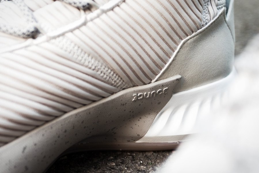 内嵌全掌 Bounce 缓震材质,上脚后第一时间就能感受到后掌的软弹,前掌并不算很明显,也许需要实战几场踩开再做评判。