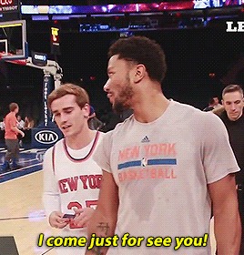 今年俄罗斯世界杯,法国最终击败克罗地亚捧起大力神杯,赛后在博格巴接受直播采访时,法国主力前锋格列兹曼在直播画面中抢过话筒高喊“我爱你,德里克·罗斯 ”,随后还送上飞吻,简直是激情四射!
