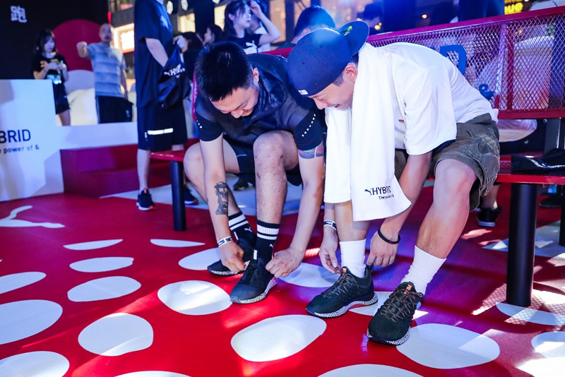 为了让大家更加直观地感受到 HYBRID Rocket 跑鞋混合式中底科技,PUMA 设立了 HYBRID 快闪体验站。整个体验站的黑白红三段设计与 HYBRID 跑鞋中底如出一辙,可谓非常科幻的体验感受!