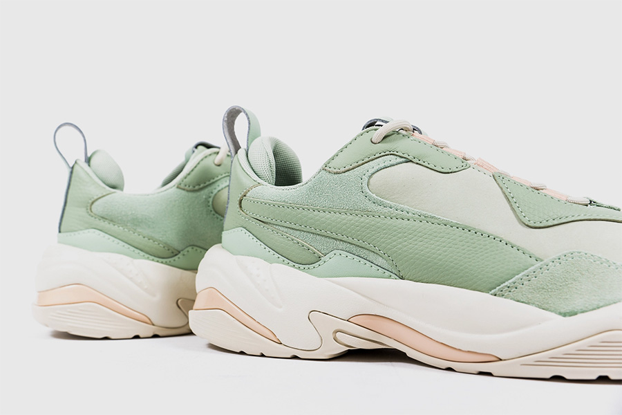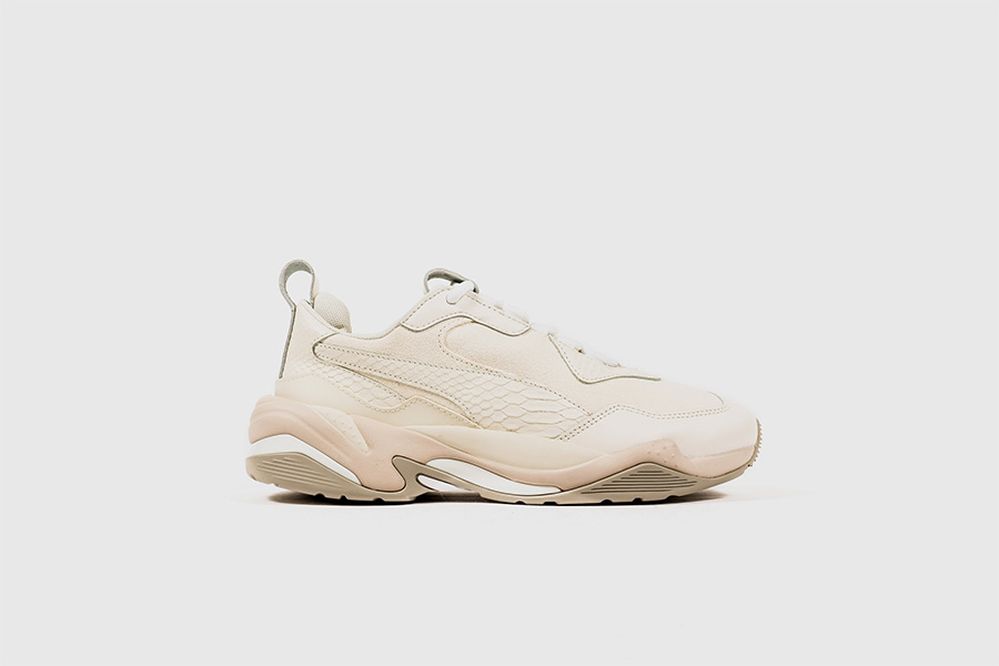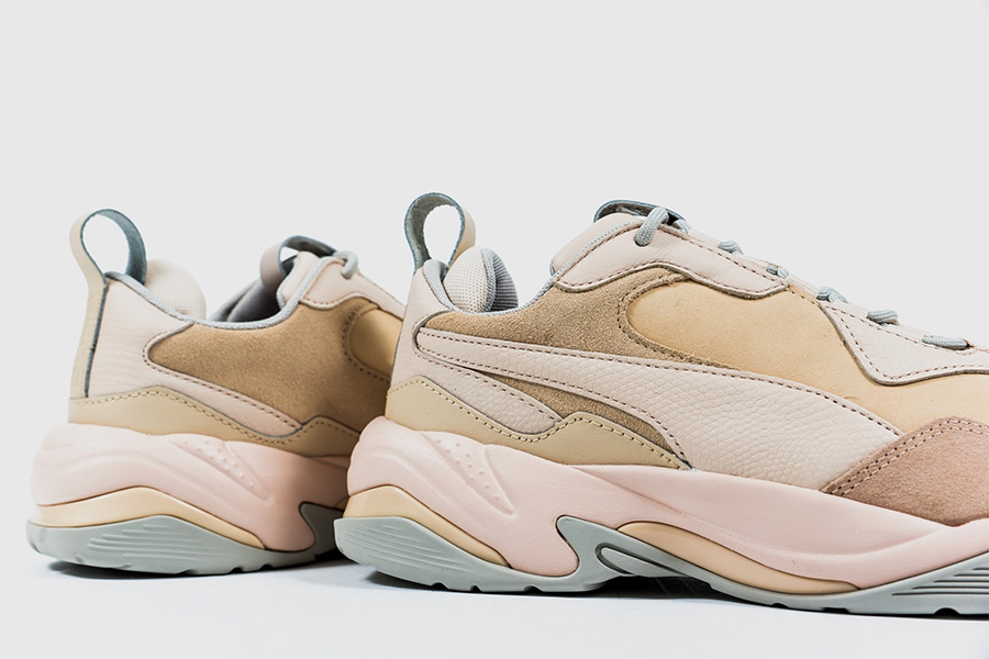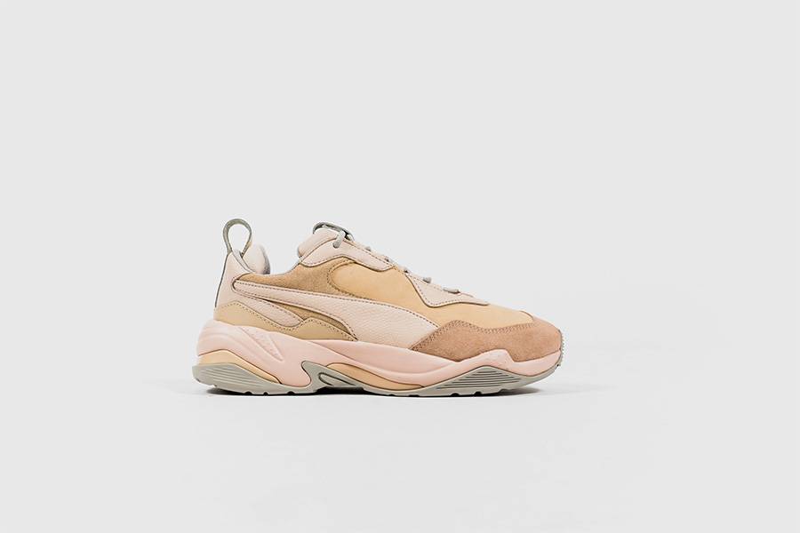 这个 Puma Thunder “Desert” 系列采用了时尚街头格外青睐的大地色调,不仅有着质感不俗的用料,浅色调的大地装扮呈现了独特的格调气质,高冷又亲切,实用又百搭,十分易于构建 “气质型” 穿搭。