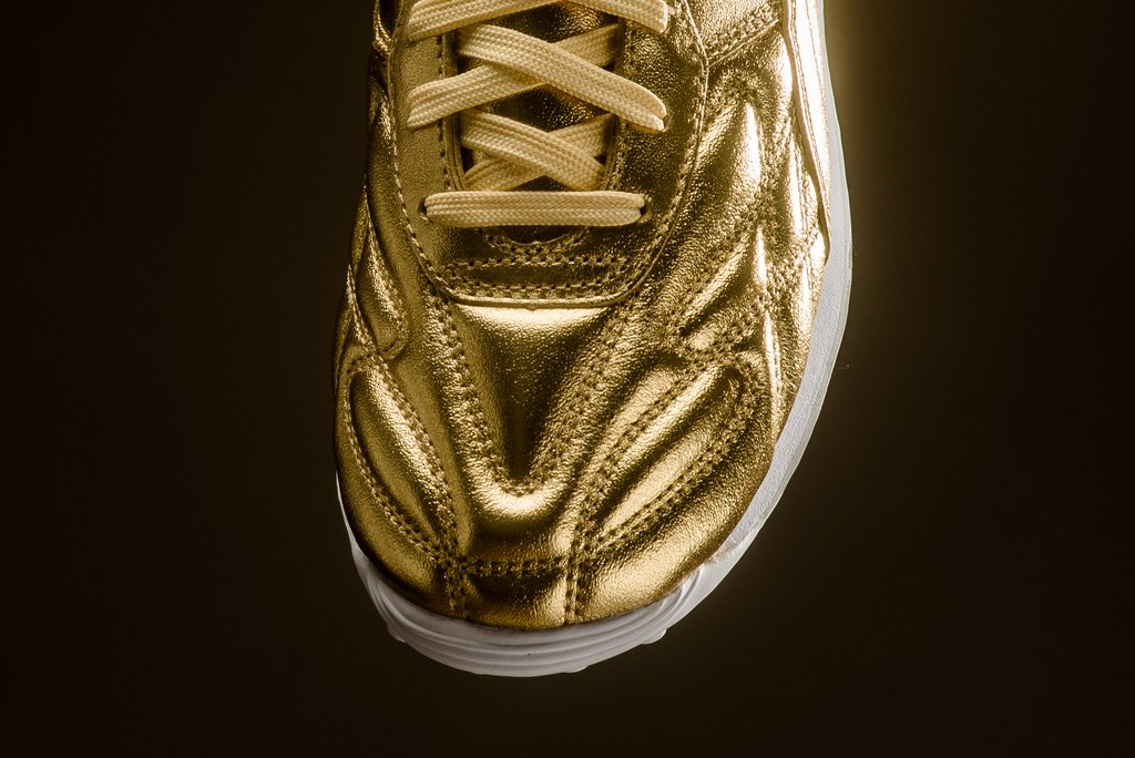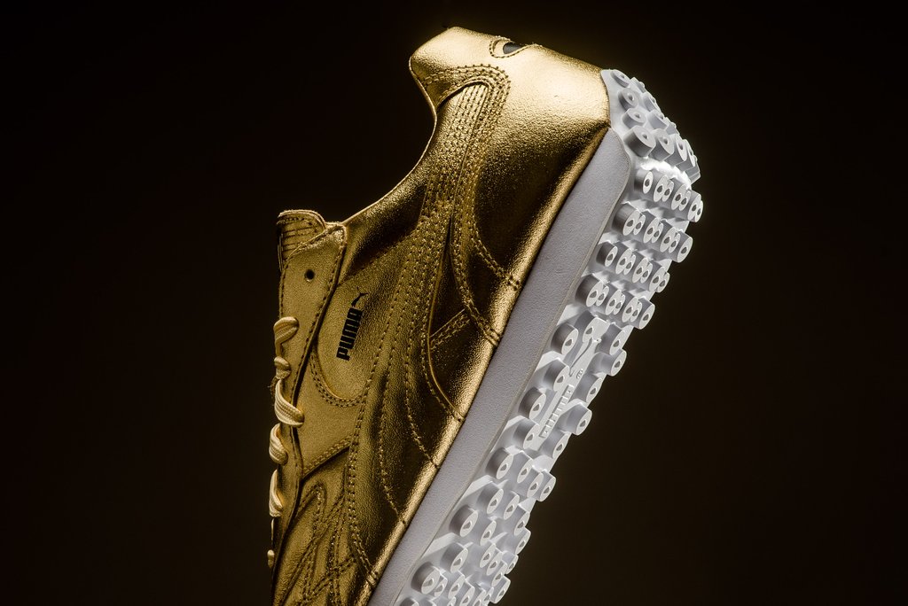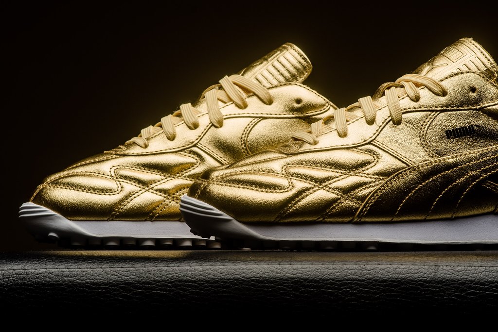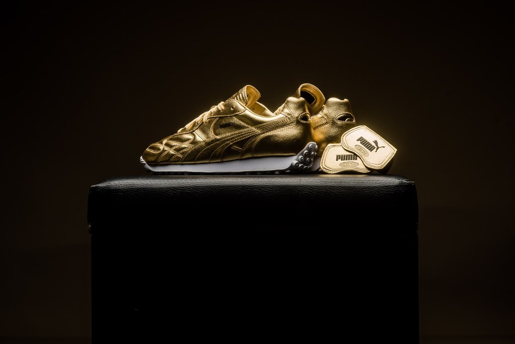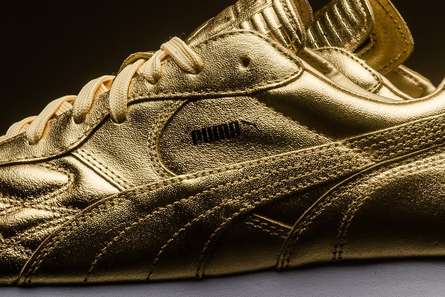 经典运动鞋型 Puma King Avanti 再度登场,在世界杯完结之时献上致敬主题。 冠以了 “Trophy” 奖杯的配色称号,在色调上则是鎏金华丽的全金色加持!高能的视觉冲击力让人过目难忘! 目前已经在海外发售,定价 $110 美元,货号为 366619-01,有兴趣的朋友不妨关注。