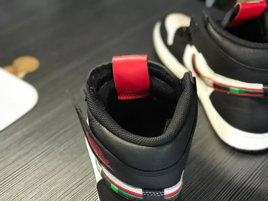 鞋款整体以黑白色 Air Jordan 1 为基础,将当年雄鹿队球衣的深浅绿色条纹颜色方案应用于侧面的刺绣 Swoosh 上,同时将鞋舌标 Nike Logo 以芝加哥公牛客场红色球衣的字体样式呈现,极具年代感。鞋帮处的脚踝鞋领两边内侧分别印有 “A STAR” 与 “IS BORN” 的字样,预示着神的诞生。鞋身材质均采用荔枝纹皮革,营造出柔软细腻的质感。