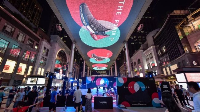 为了让更多人能直观地感受到 HYBRID 缓震这项开创式的科技,PUMA 在北京世贸天阶设立了 HYBRID 快闪体验站。
