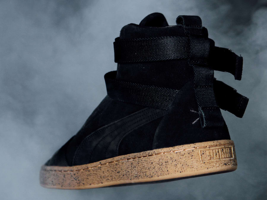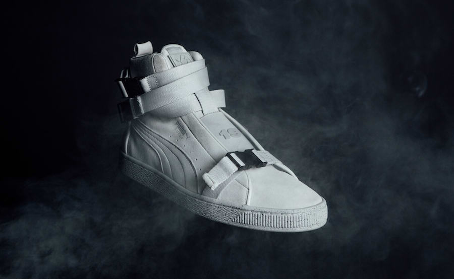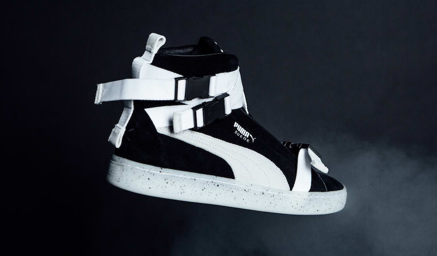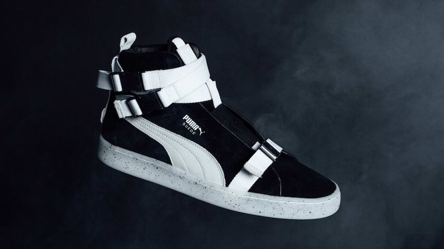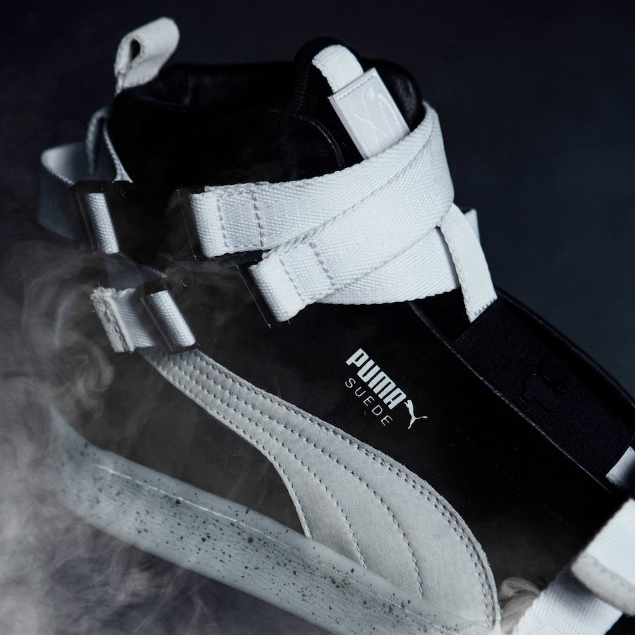 此次联名打造的 Suede,极具机能属性,共发售黑白、黑生胶、灰三种配色,取消了传统意义上的鞋带,采用插扣绑带设计,并于意大利当地生产,品质极其精良,泼墨中底点缀,与鞋身完美结合。细节设计上鞋身的 “19” “68” 为鞋型 Suede 诞生年份,而鞋舌的 Logo,极具辨识度!