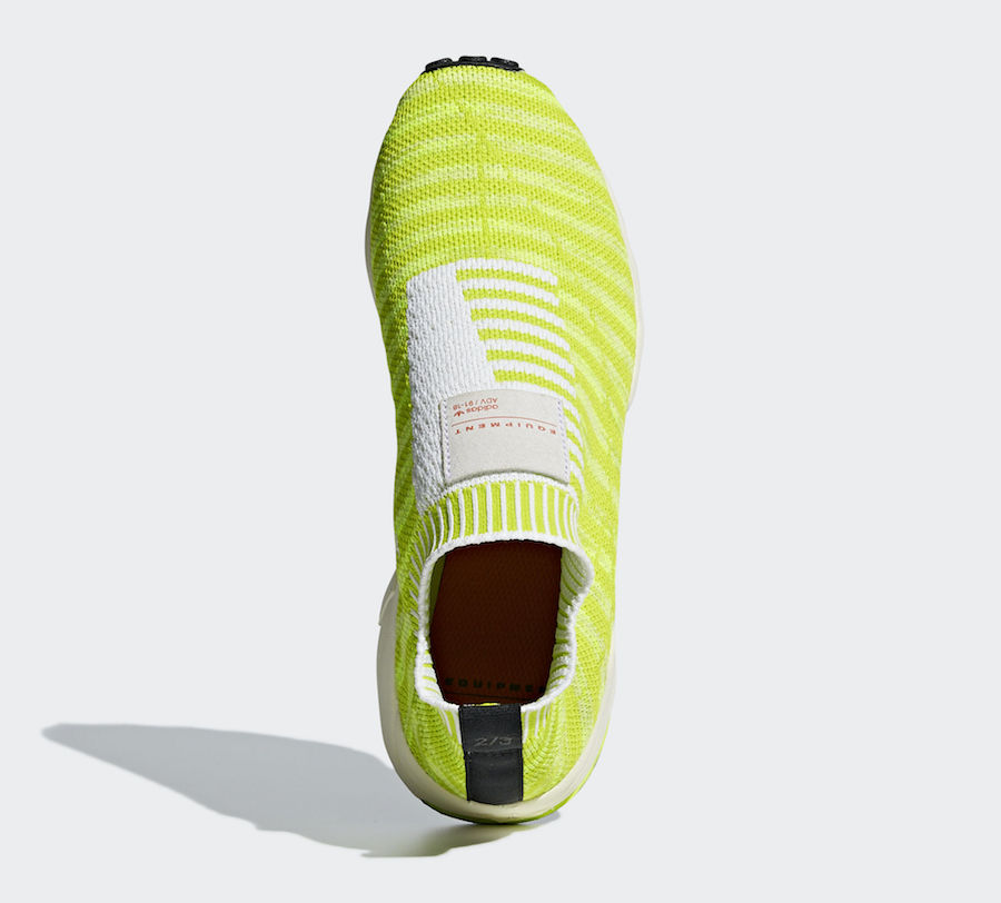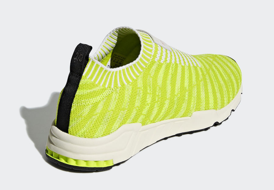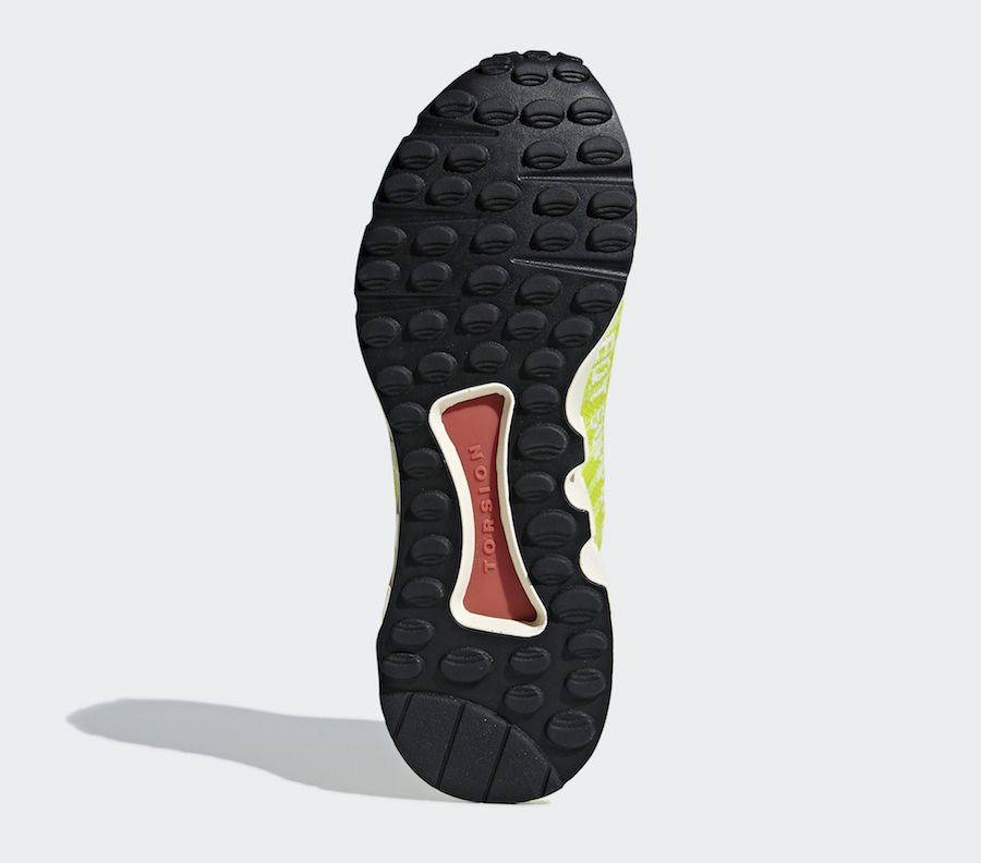整体以荧光黄 Primeknit 编织袜套示人,细节辅以白色几何线条点缀,鞋身内侧 “EQT SUPPORT” 字样表明身份,最后辅以 Runnning Support 93 的大底收尾,将现代科技与复古气氛完美融合。