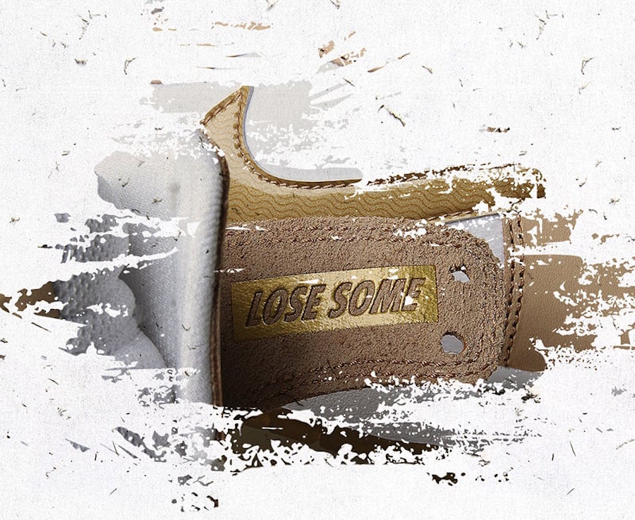 而鞋帮处则与 OFF-WHITE 联名设计相似,脚踝处可拆开的鞋领内用金色刻有 “Win Some” 和 “Lose Some” 字样。细节满满的同时,完美诠释了本次联名的主题。