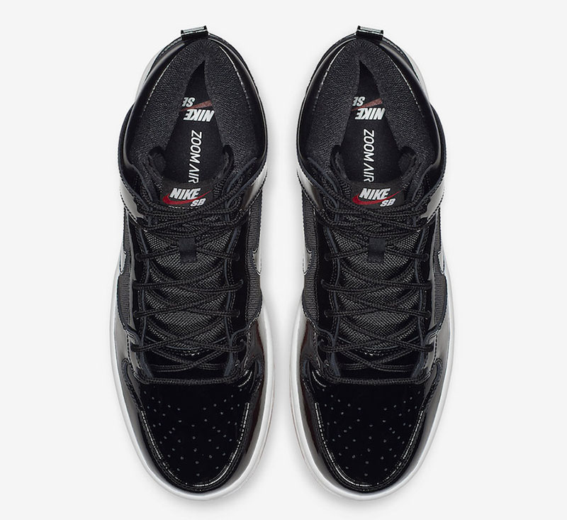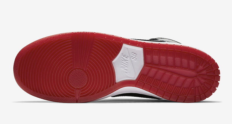 今年 11 月 Nike SB 将这一经典配色移植到 Dunk High 之上,不仅保留了黑色漆皮 + 尼龙的鞋身材质,红色果冻大底的设定也一并保留,更在后跟位置模仿 AJ11 数字的格式呈现 “SB” Logo,整体致敬意味及其浓厚!