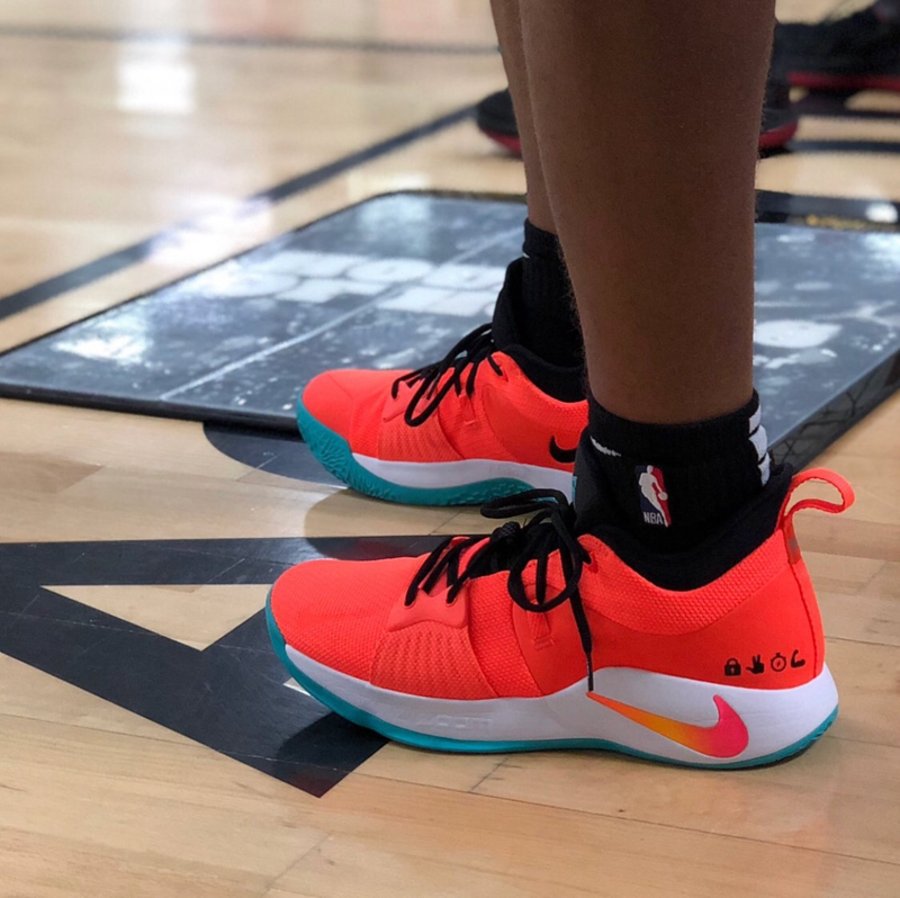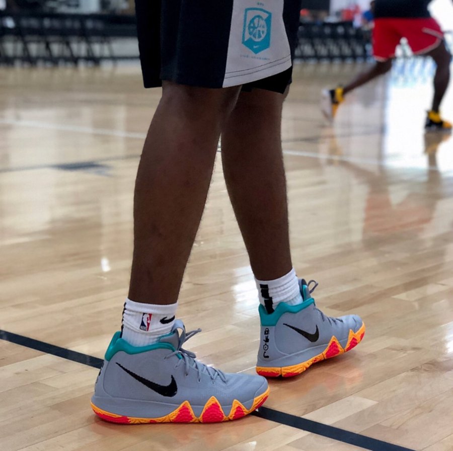 其中包含 LeBron Soldier 12、Nike KD 11、Kyrie 4 以及 PG 2 四款战靴,鞋身均由橙红渐变的 Nike Swoosh 和 Academy 专属图标点缀,辨识度极高。