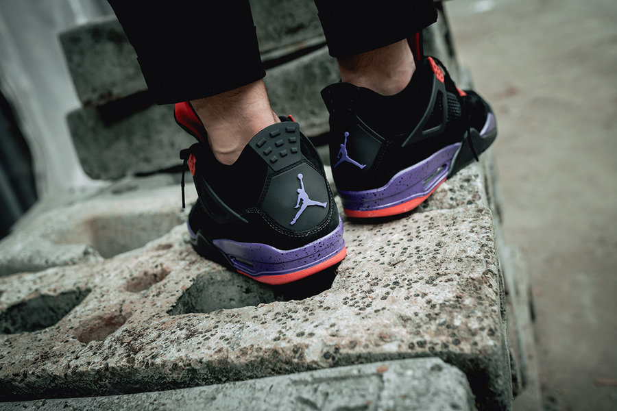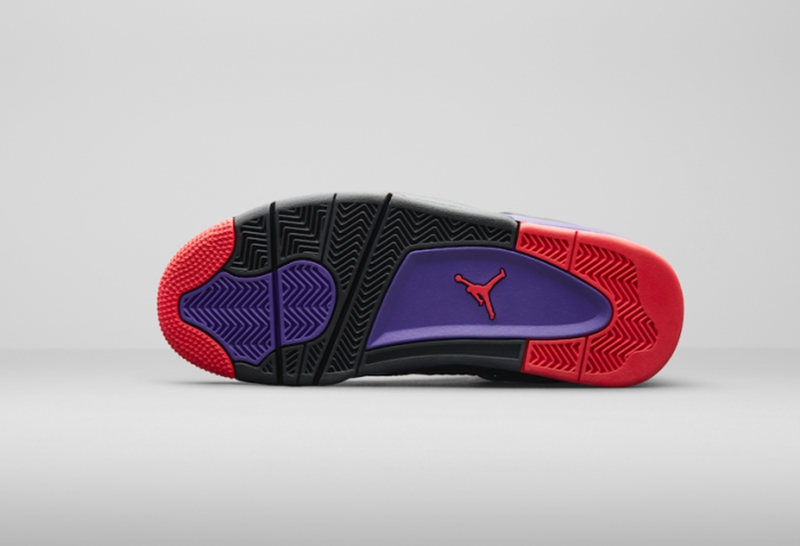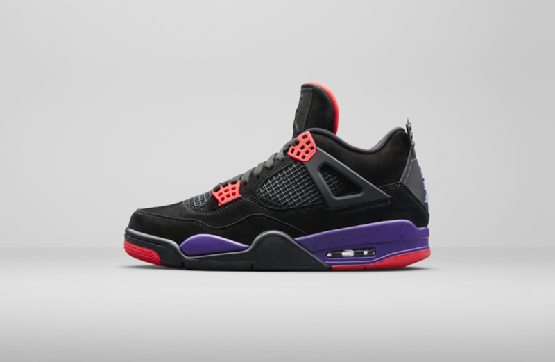 黑色磨砂皮革打造 Air Jordan 4 “Raptors” 整个鞋面,中底泼墨设计搭配紫色与红色点缀细节,营造出浓浓的猛龙队气氛,设计上诚意满满,上脚表现更是沉稳与激情迸发!