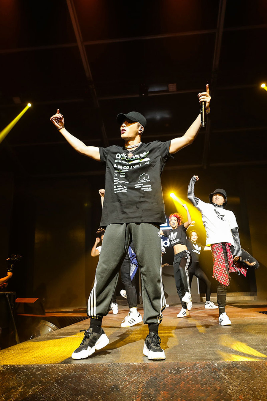 当晚最大亮点当属由 Original Icon 王嘉尔带来的惊喜演出,音乐节奏燃爆现场,嘻哈音乐风格完美体现了 adidas Originals 原创街头和都市现代感,释放出无与伦比的青年原创力。