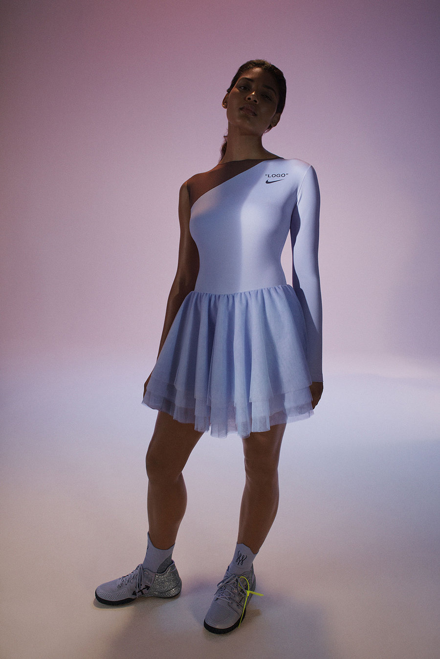 更值得注意的是全新单品,网球鞋 OFF-WHITE x NikeCourt Flare、网球裙与网球袜都让人为之惊艳,不仅延续了 Nike 一贯的运动风格与功能需求,更在其基础上增添了 OFF-WHITE 最擅长的解构设计与时尚改造。